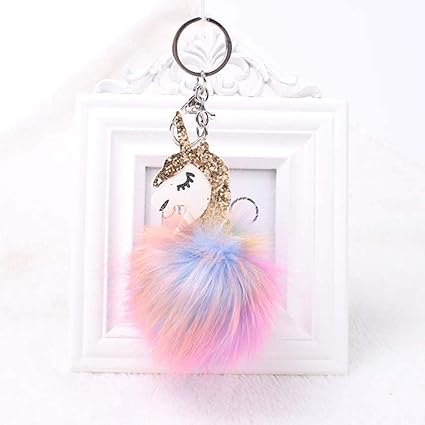 Amazon Com Jewh Anime Unicorn Plush Toy Fluffy Fur Pom Pom Metal