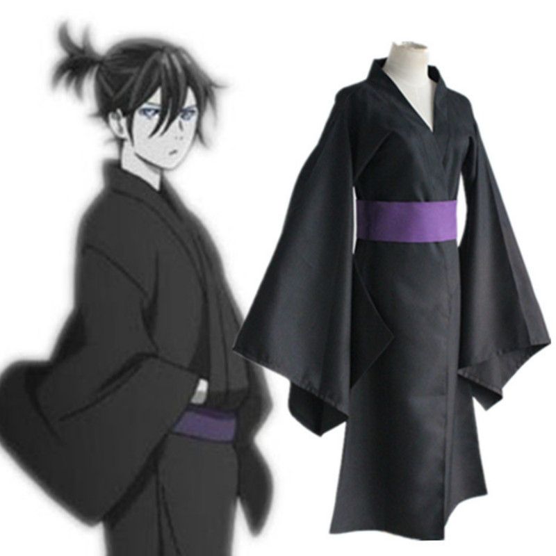 Anime Noragami Yato Cosplay Costume Full Set Black Kimono Yukata